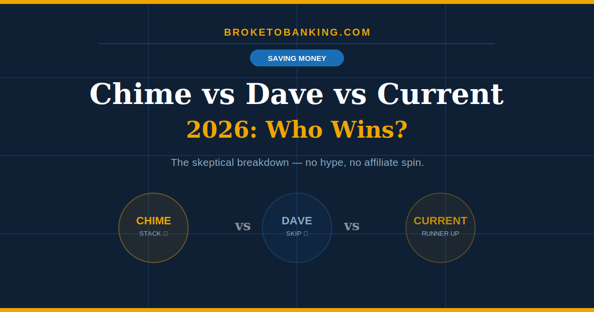 Chime vs Dave vs Current 2026: Which Banking App Is Actually Worth It?